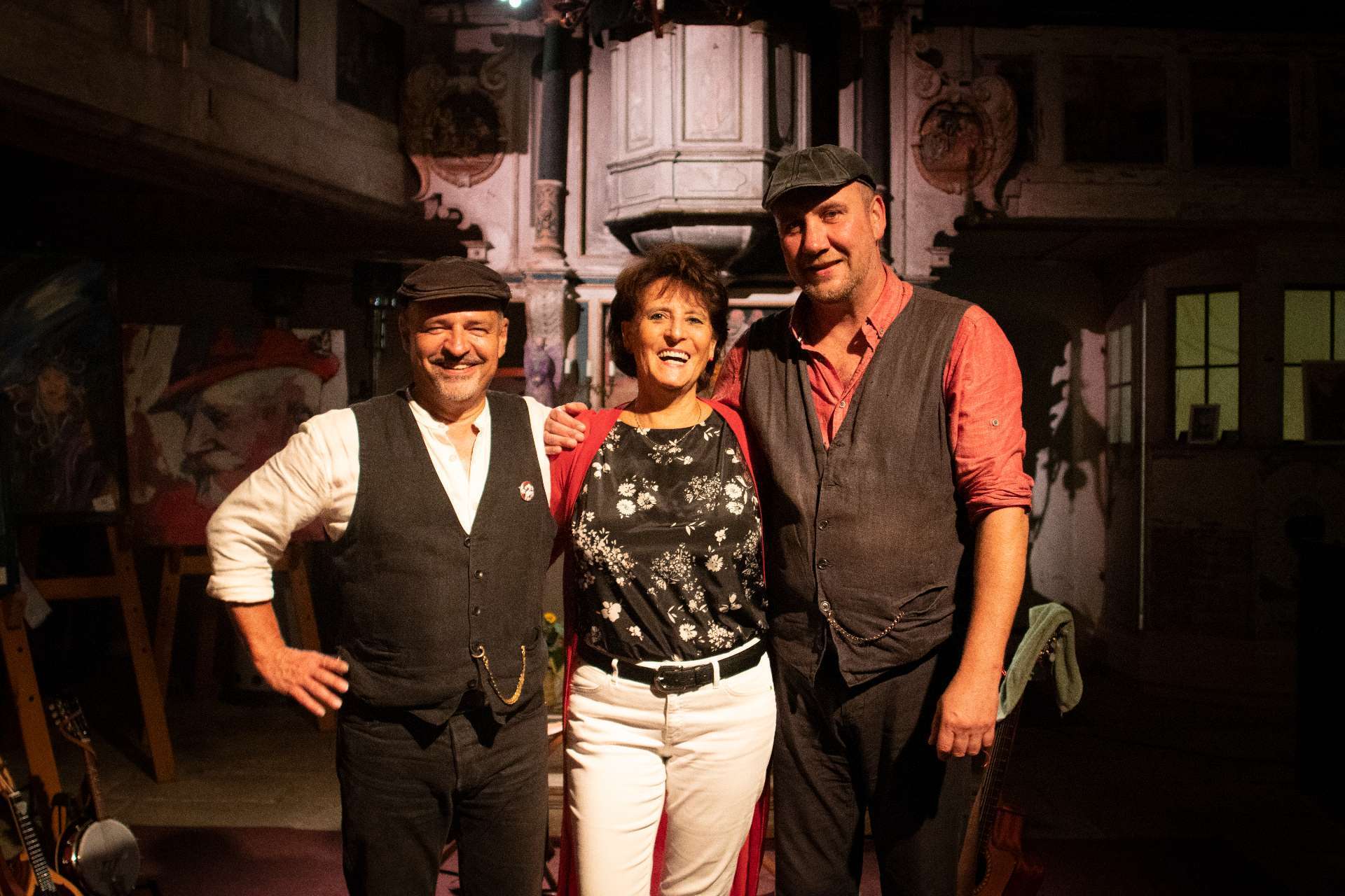 Luise Egermann ist in diesem Verein zu Hause und hat uns zu einem kleinen Experiment eingeladen. Ein rundum sächsischer Abend mit unseren säggs´schen Folksliedern und dem überaus unterhaltsamen säggs´schen Sprachseminar von Annekatrin Michler aus Leipzig. Wir waren zunächst etwas skeptisch, ob das Format so funktioniert. Wie sich dann herausstellte, völlig unbegründet: Das Publikum war einfach Klasse und hatte kurweiligen Spaß. Und die Idee, unser beider Programme zu verbinden, werden wir in Zukunft sicher in gemeinsamen Projekten aufgreifen.