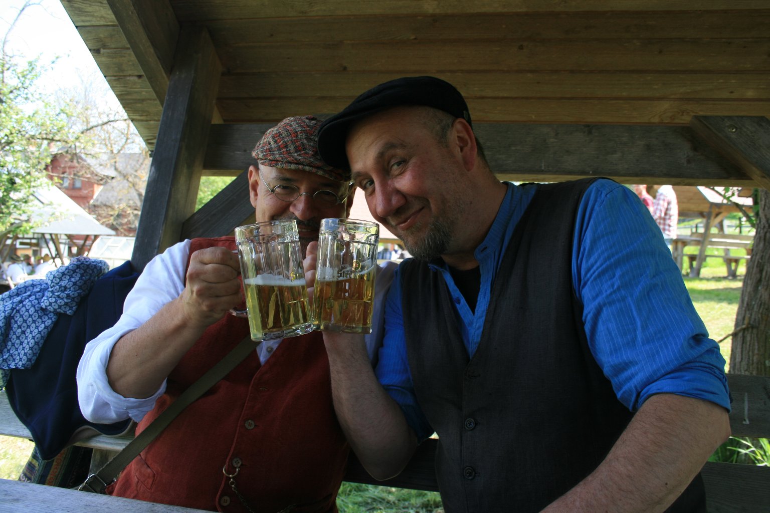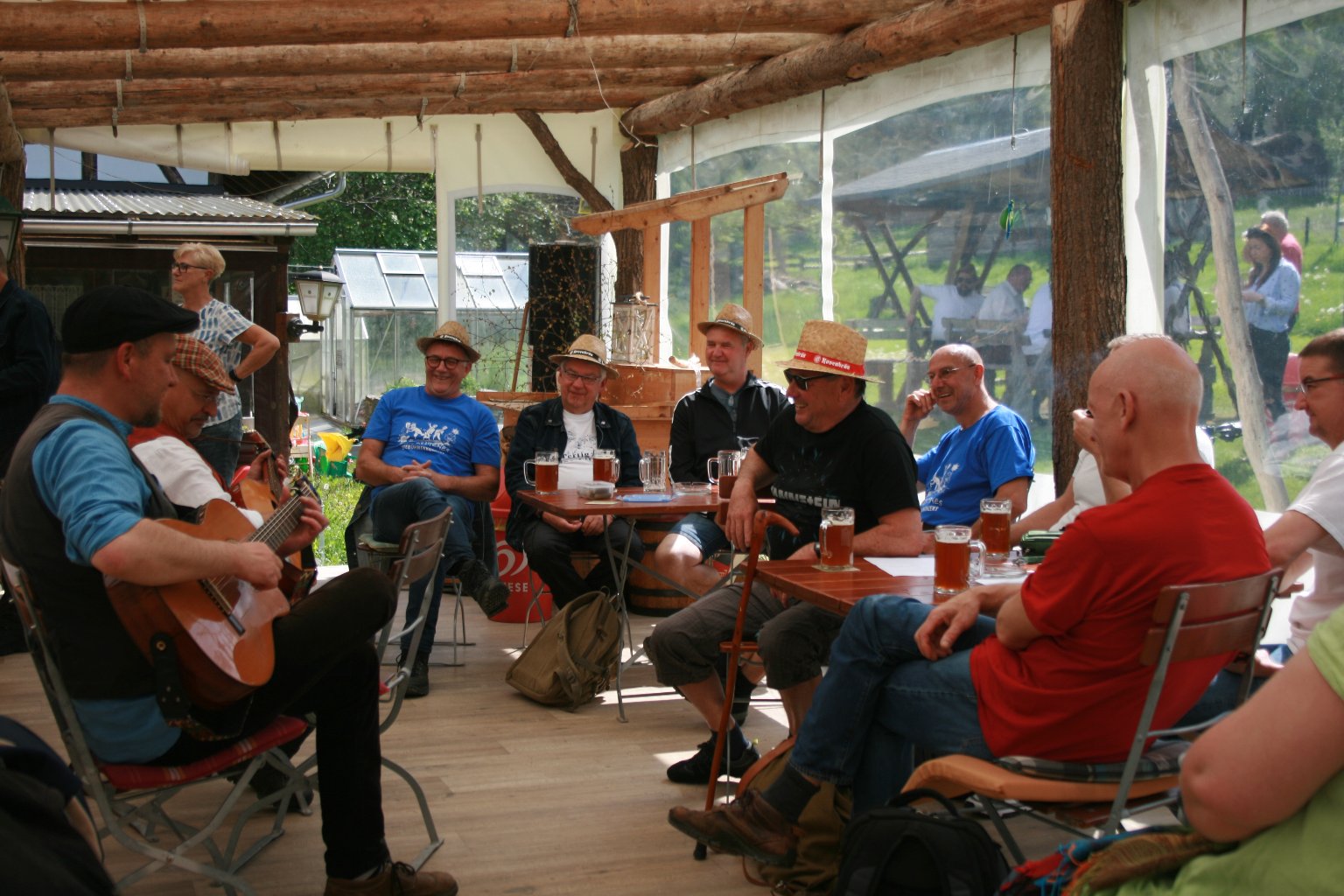 Am Vorwerk Altenroth ließ uns Käptn Falko von Bord und dieses Mal haben wir auch keinen vergessen ;-). Hier mussten wir ersteinmal unsere Kehlen tränken, denn die Schiffspartie hat unsere untrainierten Stimmbänder schon ordentlich strapaziert. Zu unserer großen Überraschung und Freude trafen wir dort auf Maik Termer von Halbsaiten aus Schlettwein und seine Gesellen. Maik hatten wir Himmelfahrt 2010