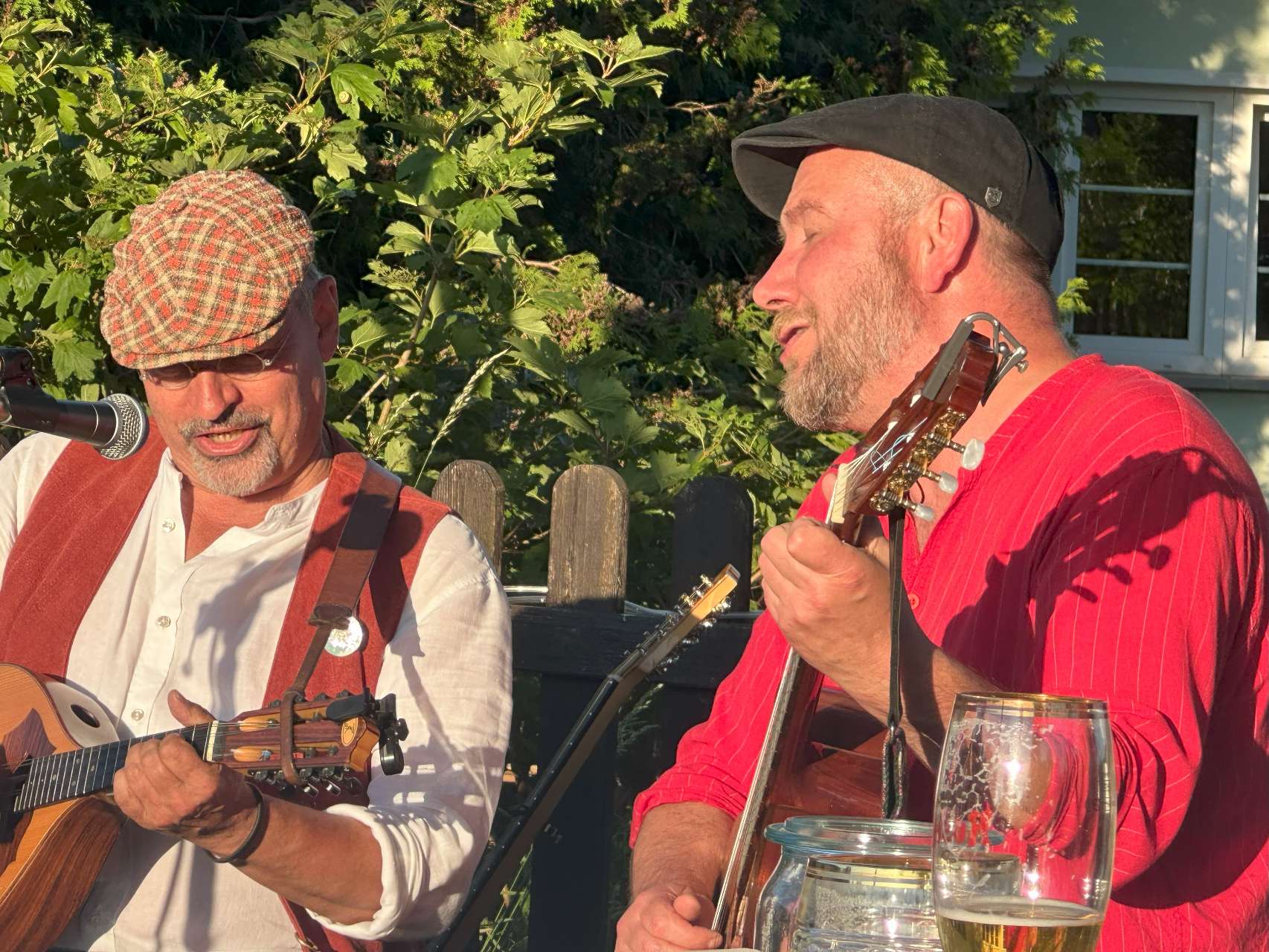 Es war für Tim und uns abgemachte Sache: Bei passender Gelegenheit wollten wir einen Thüringisch-Sächsischen Liederabend in Tanna gestalten. Tanna ist die erste Heimat von Tim und mittlerweile die zweitliebste vom Fränker. Das hiesige Gasthaus "Zum Löwen" ist eine überaus sympathische Institution und so haben wir uns gefreut, dass der Wirt uns und unsere Gäste in seinen sommerlichen Biergarten ließ. Die Gäste erschienen zahlreich und bei kuschelig-sommerlichen Temperaturen waren wie alle sehr froh, dass wir Frischluft atmen konnten. Gefreut haben wir uns vor allem, dass so viele Freunde und treue Wegbegleiter gekommen waren.