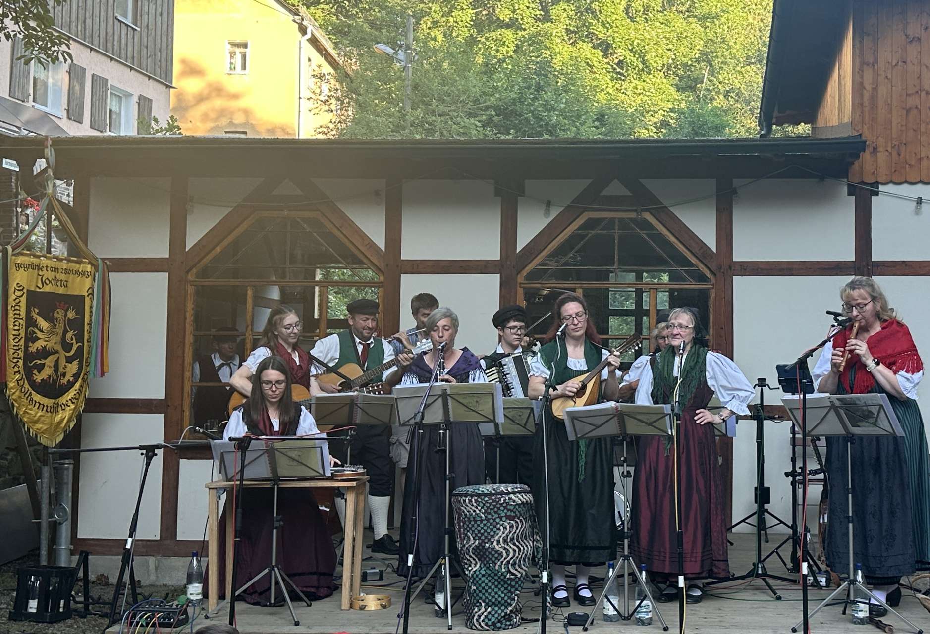 Ruinenfest in Liebau 2022 war es für uns abgemachte Sache, dass wir wieder mal bei den Gockeschen spielen werden. Ein Verein, der sich über so viele Jahre hinweg so engagiert um die Folkslied- und Tanztradition des Vogtlandes kümmert, gehört unterstützt! Immerhin singen und tanzen die Gockeschen schon 60 Jahre und das gehört sich auch ordentlich gefeiert.