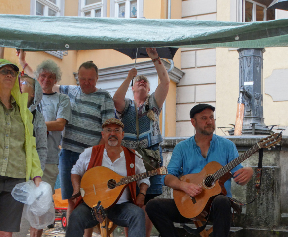 Eine eigene Atmosphäre entfalten auch die Gassen der Altstadt in Rudolstadt. Hier war das "Gasse bilden" öfters angesagt. Es funktionierte vorbildlich. Könntet Ihr vielleicht darüber ein Lied schreiben? Vielleicht könnt Ihr es ja im nächsten Jahr nach Rudolstadt mitbringen.