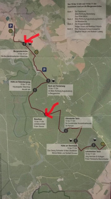 Wir waren am Basaltsee zugange und konnten uns über den Tag mit Franz Severa abwechseln, einem Musikantenurgestein aus dem sächsisch-böhmischen Grenzland. Die Wald-Kulisse war nicht nur sehr schön, sondern bot auch eine überraschend gute Akustik. Das zahlreiche Wanderfolk war guter Dinge und wir hatten großen Spaß.