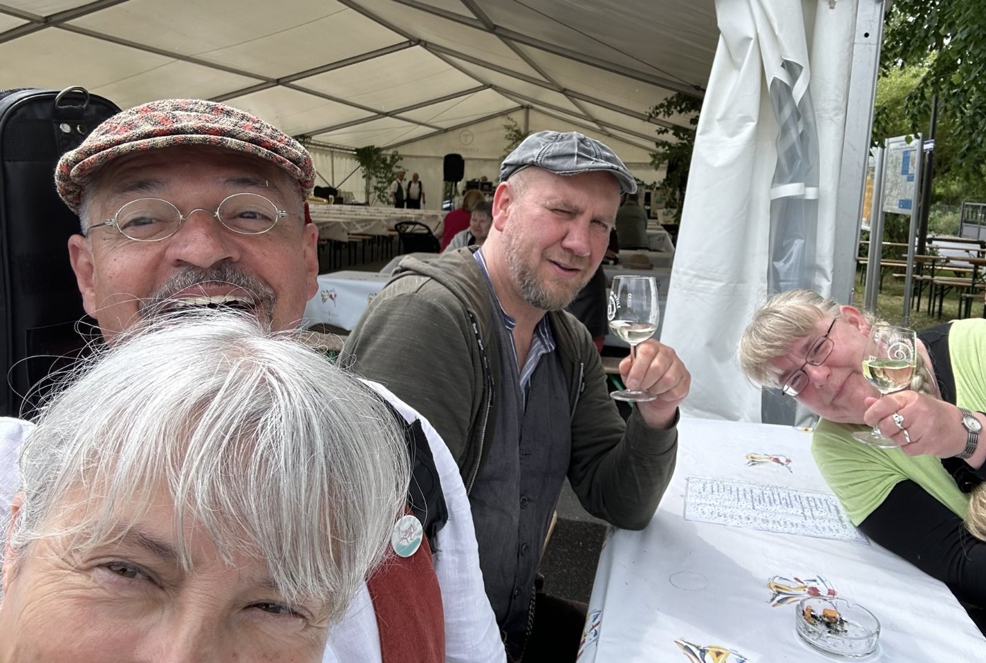 Ermuntert von unserem Trainingslager "Himmelfahrt" zogen wir gut gelaunt an die Weinberge von Saale und Unstrut, genauer gesagt an den "Göttersitz" wo wir in den letzten Jahren den einzigen Ort für uns gefunden hatten, um ungestört akustisch musizieren zu können.