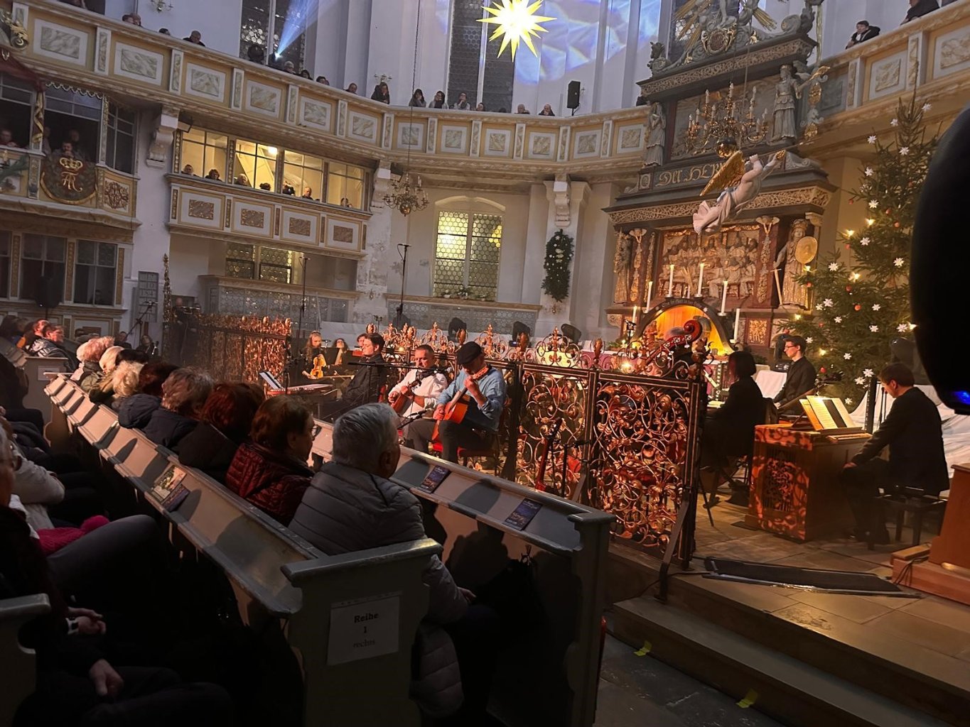 Die Kirche war bis auf den letzten Platz ausverkauft. Vor so vielen Leuten hatten wir noch nie musiziert. Schließlich haben uns die tolle Organisation von Luise, die intensive Generalprobe mit den Musikerkollegen und die fachkundige Betreuung durch die Techniker mental so aufgefangen, dass wir ganz entspannt und voller Vorfreude auf den Konzertbeginn gewartet haben. Aber zugegeben: Wenn man in einer solch barocken Kirche vor ausverkauftem Publikum auftreten soll, hat man schon ein bisschen Muffensausen.