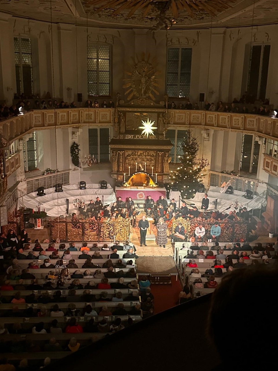 Als wir dann aber in die gefüllte Kirche kamen, unsere Plätze einnahmen und unsere Blicke über das Auditorium schweifen ließen, wurde es uns ganz warm ums Herz. Und dieses schöne Gefühl hat uns alle auf der Bühne über den Abend hinweg getragen. Die tolle Musik, das schöne Licht und die greifbare Nähe der Musiker zum Publikum.