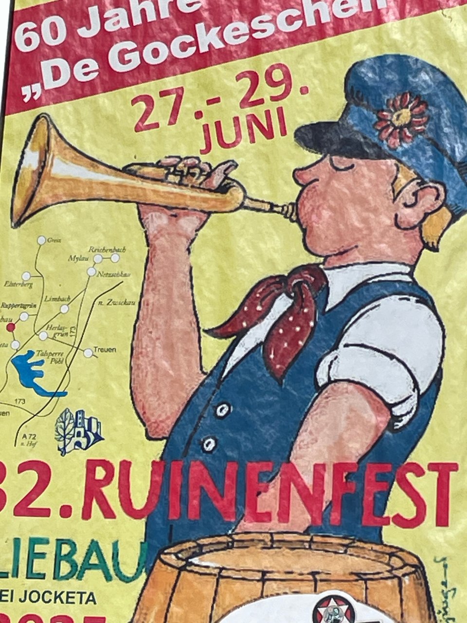 Ruinenfest in Liebau 2022 war es für uns abgemachte Sache, dass wir wieder mal bei den Gockeschen spielen werden. Ein Verein, der sich über so viele Jahre hinweg so engagiert um die Folkslied- und Tanztradition des Vogtlandes kümmert, gehört unterstützt! Immerhin singen und tanzen die Gockeschen schon 60 Jahre und das gehört sich auch ordentlich gefeiert.