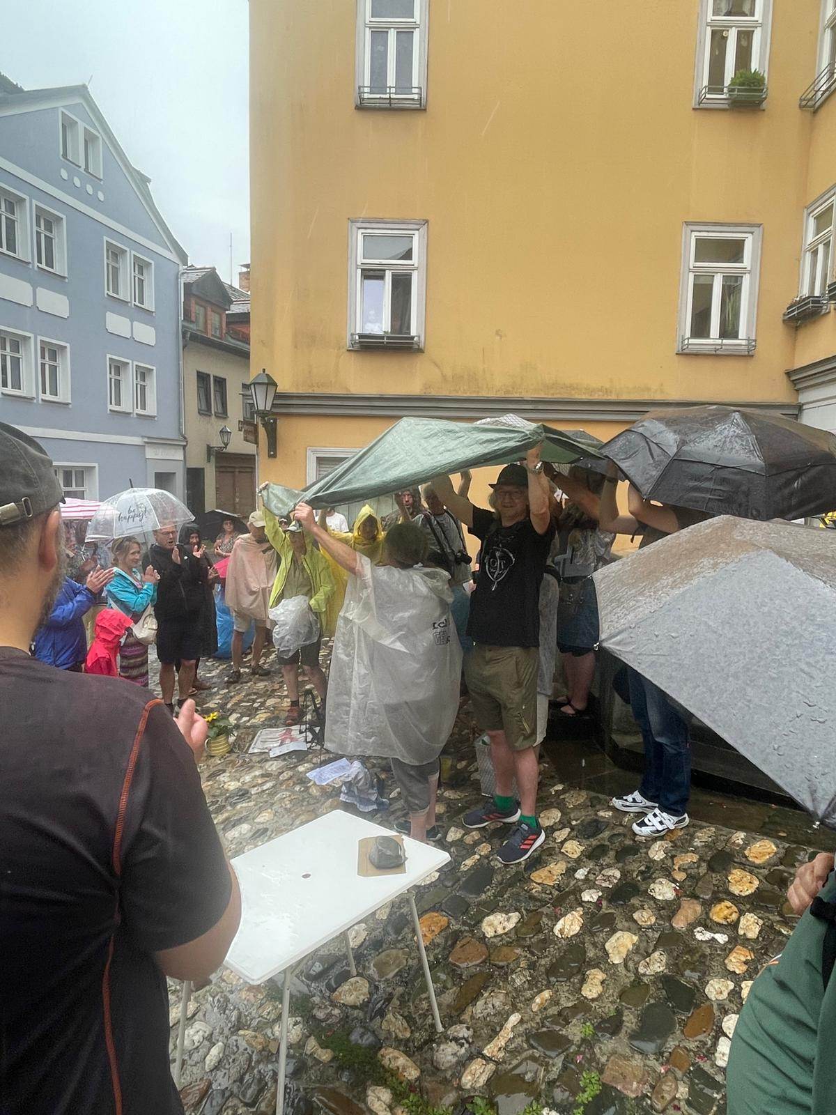 Lieber Kay, es war auch für uns eine ungewöhnliche, dafür aber um so lustigere Premiere, mit einem mobilen und publikumsgestützten Bühnendach zu musizieren. Sowas gibt´s eben nur in Rudolstadt :-)
